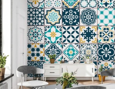 Designed to resemble ceramic or mosaic tiles, it offers a cost-effective and stylish alternative to real tile.